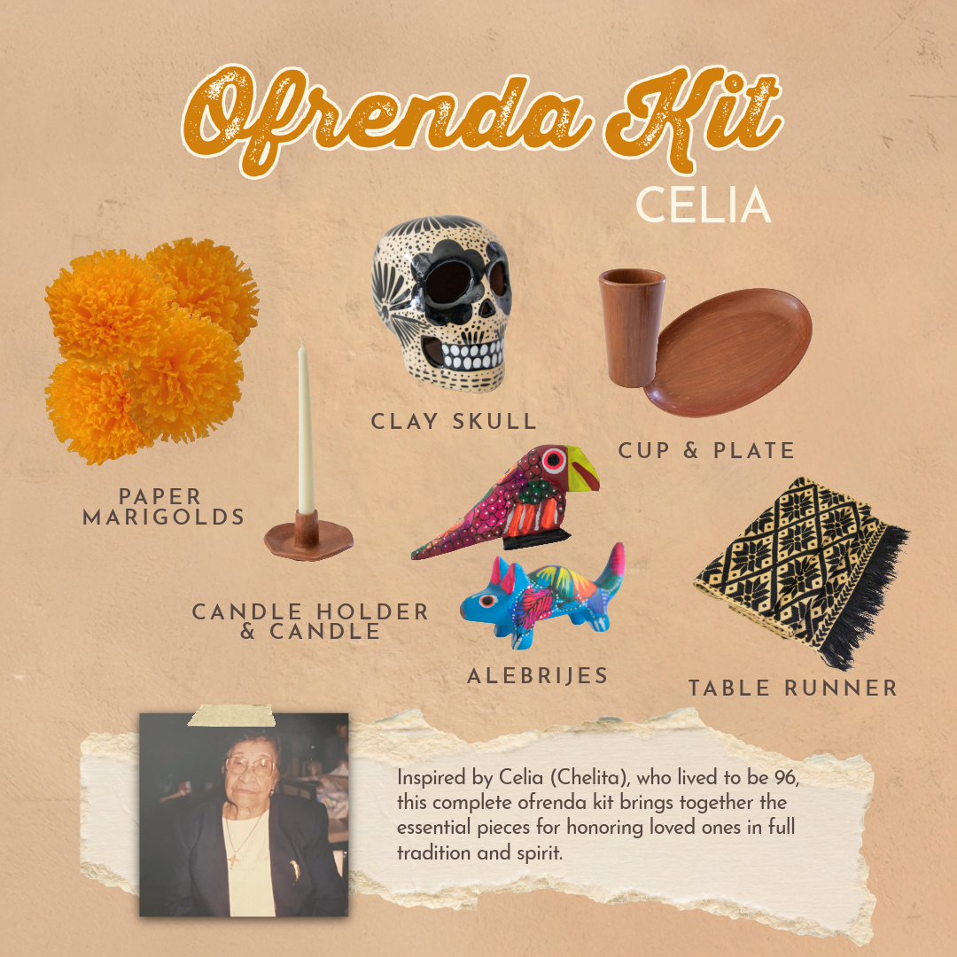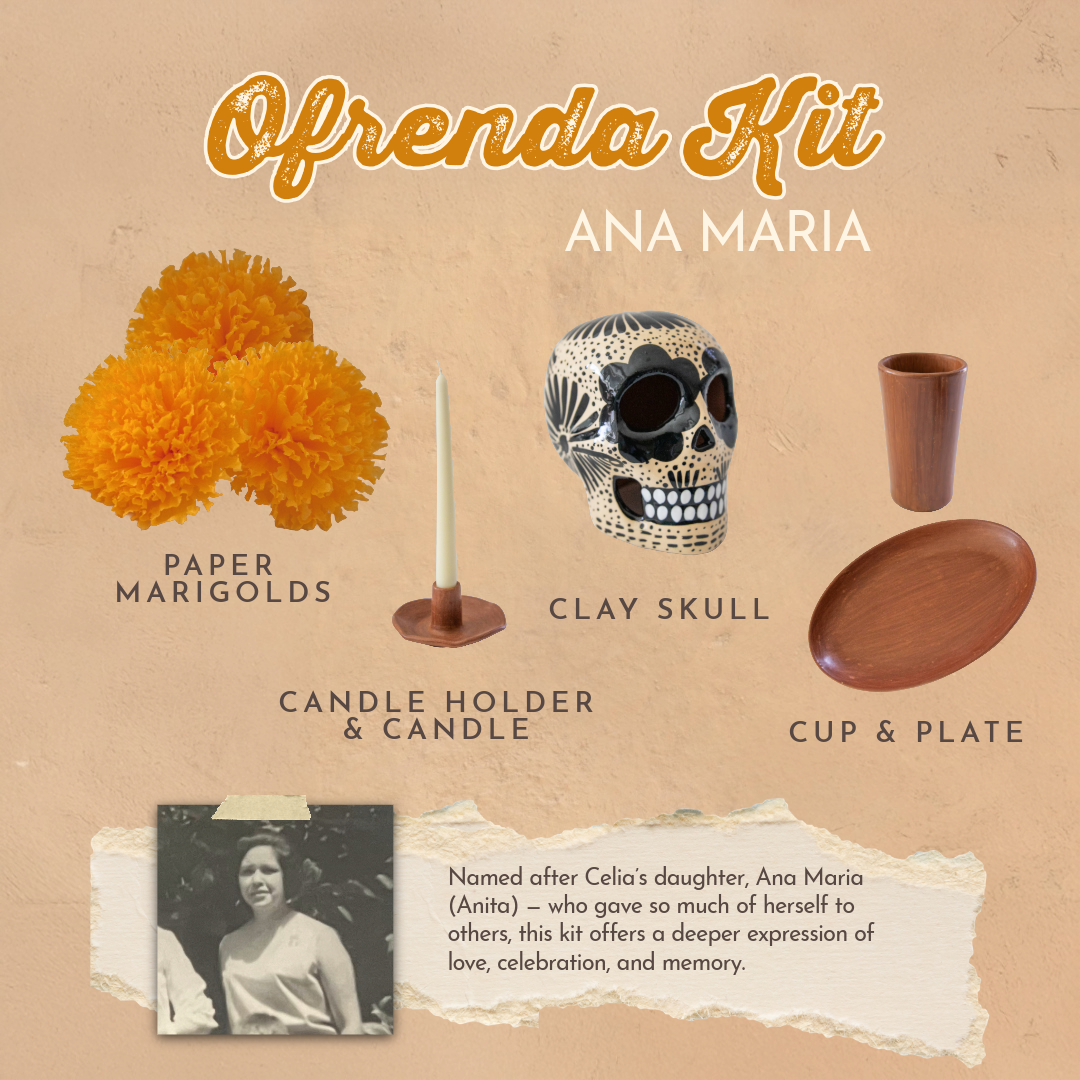 Named after three important women in our family, the Amor Eterno Ofrenda Kits are designed to help you create a space filled with love and remembrance. Whether building your first ofrenda or continuing a cherished tradition, each kit brings together artisan-made pieces and meaningful elements to honor your loved this Día de Muertos.